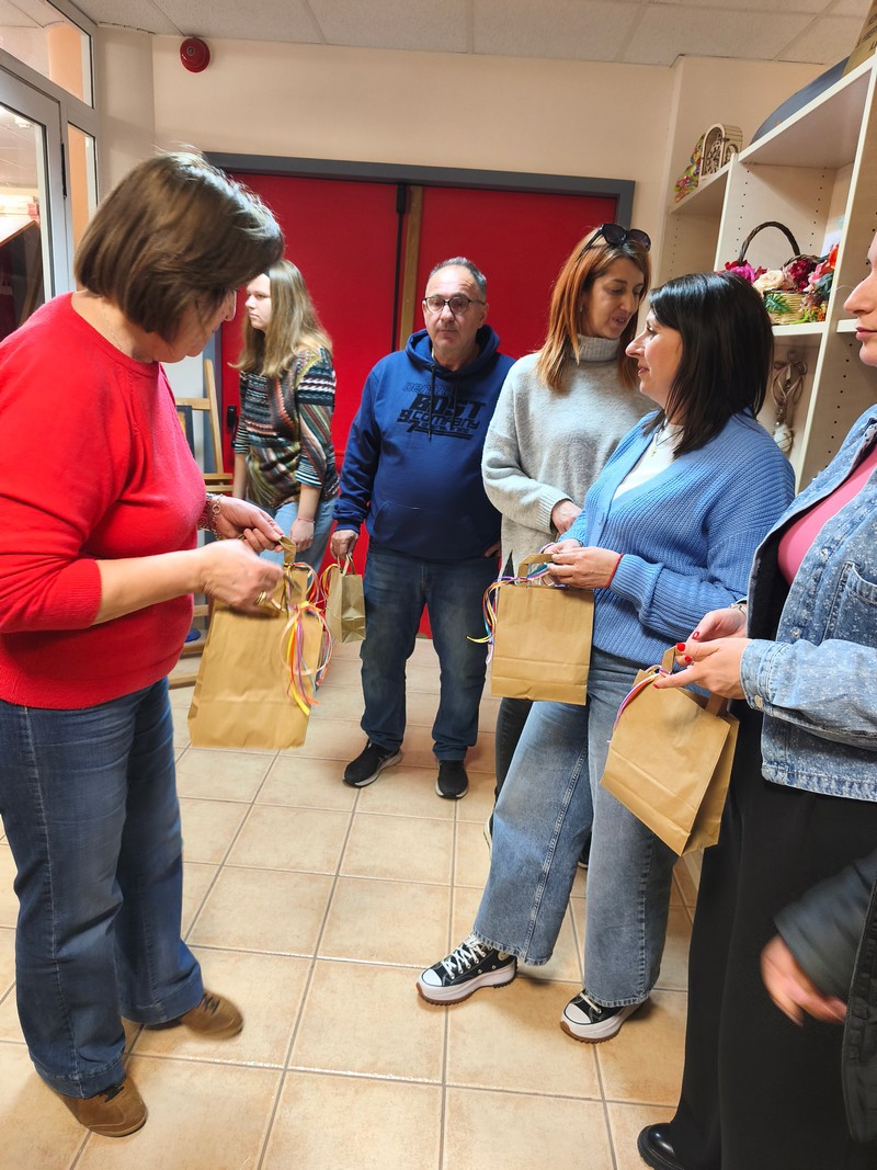 Στο τέλος της επίσκεψης, οι ωφελούμενοι του Κέντρου προσέφεραν με χαρά κεράσματα και μικρά δώρα στους μαθητές και τους εκπαιδευτικούς τους, ως ένδειξη φιλοξενίας και ευγνωμοσύνης.