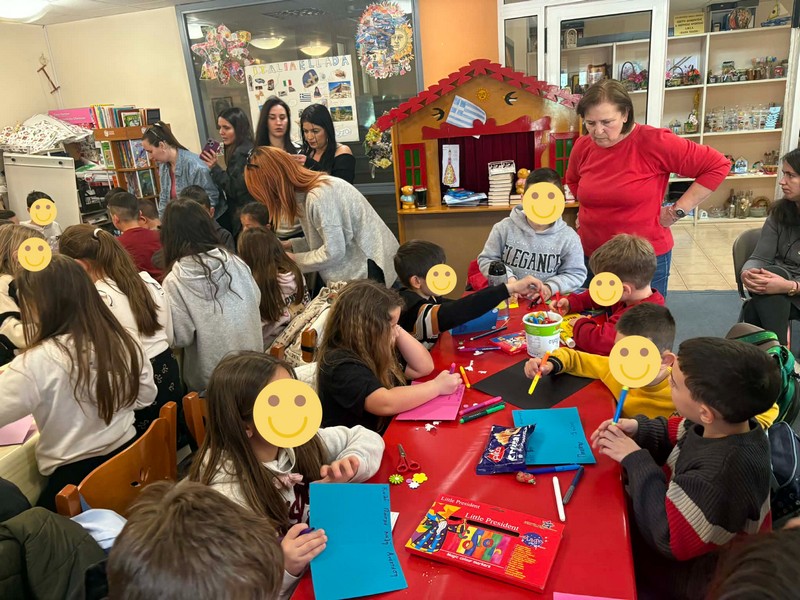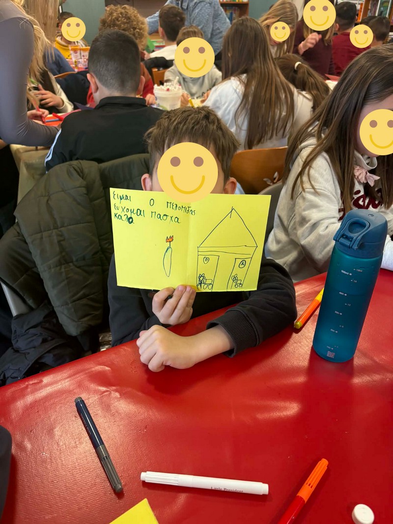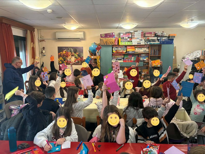 Ξεχωριστή στιγμή της επίσκεψης αποτέλεσε η δημιουργική δραστηριότητα, κατά την οποία οι μικροί μαθητές, με ενθουσιασμό και φαντασία, κατασκεύασαν πασχαλιάτικες ευχετήριες κάρτες, γεμίζοντας τον χώρο με χρώματα και χαμόγελα.