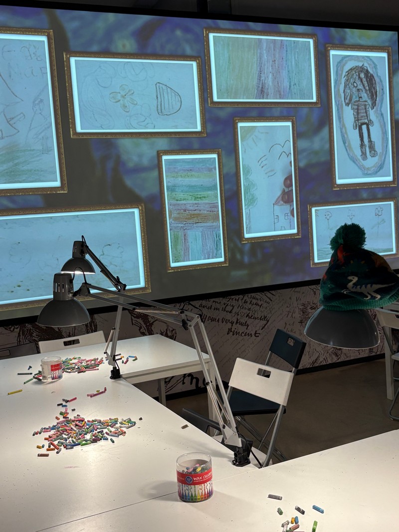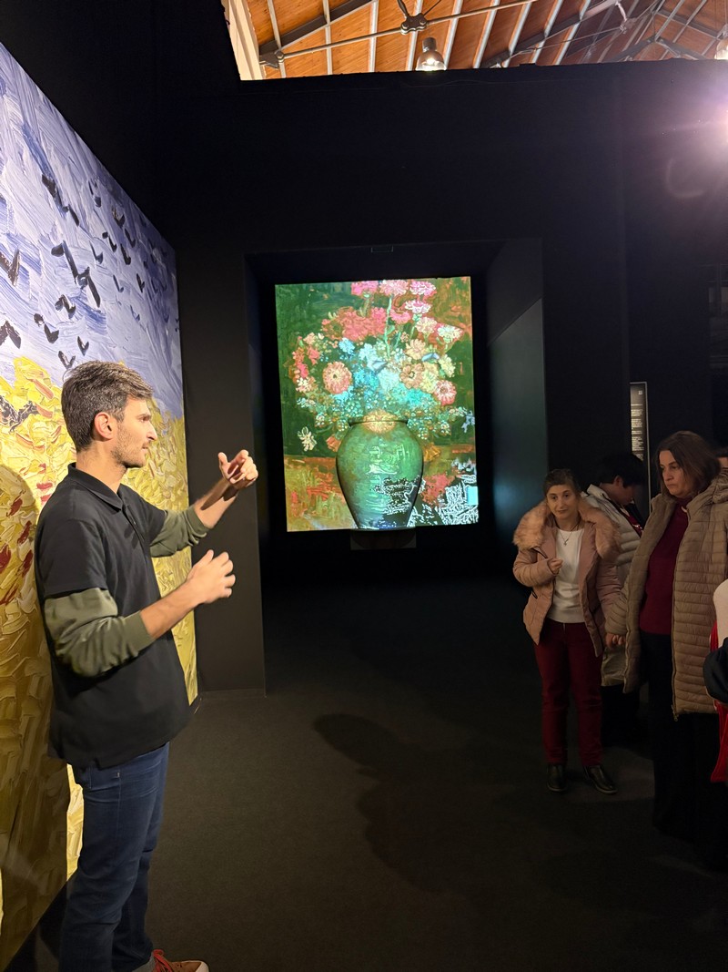 Παράλληλα, μέσα από διαδραστικά εκθέματα και επεξηγηματικά πάνελ, οι νέοι έμαθαν ενδιαφέρουσες λεπτομέρειες για τη ζωή και την πορεία του καλλιτέχνη, γεγονότα που επηρέασαν τη δημιουργία κάθε περιόδου της ζωγραφικής του. Ιδιαίτερο ενδιαφέρον προκάλεσε ο χώρος δημιουργίας, όπου είχαν τη δυνατότητα να ζωγραφίσουν οι ίδιοι, εμπνευσμένοι από τα χρώματα και τις τεχνικές του βαν Γκογκ. Τα έργα τους, μάλιστα, προβλήθηκαν ψηφιακά σε ειδικές οθόνες, δίνοντάς τους την εμπειρία πως συμμετέχουν ενεργά στον μαγευτικό κόσμο της έκθεσης.