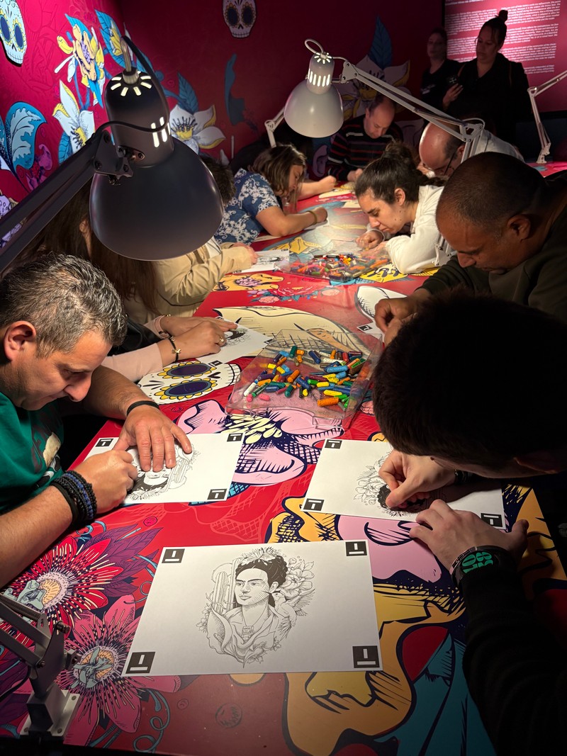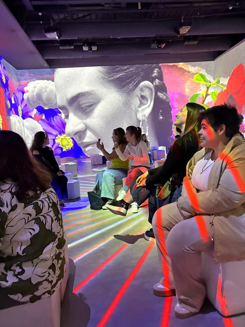 Παράλληλα, μέσα από διαδραστικά εκθέματα και επεξηγηματικά πάνελ, οι νέοι έμαθαν ενδιαφέρουσες λεπτομέρειες για τη ζωή και την πορεία της, γεγονότα που επηρέασαν τη ζωγραφική της. Ιδιαίτερο ενδιαφέρον προκάλεσε ο χώρος δημιουργίας, όπου είχαν τη δυνατότητα να ζωγραφίσουν οι ίδιοι, εμπνευσμένοι από τα χρώματα που χρησιμοποιούσε η Frida. Τα έργα τους, μάλιστα, προβλήθηκαν ψηφιακά σε ειδικές οθόνες, δίνοντάς τους την εμπειρία πως συμμετέχουν ενεργά στον μαγευτικό κόσμο της έκθεσης.