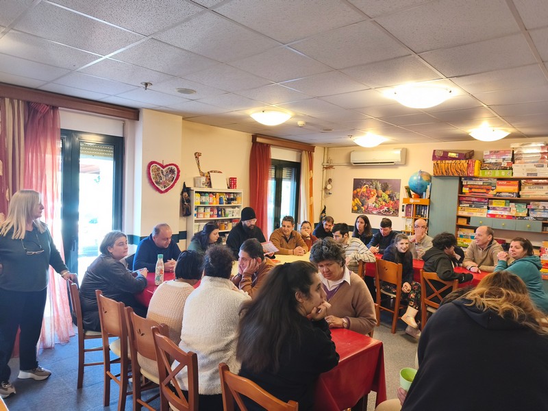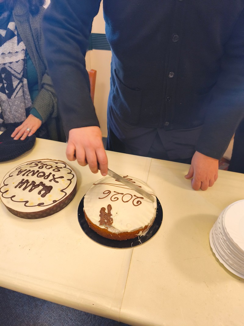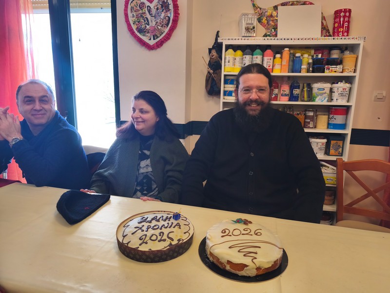 Στο πλαίσιο της επίσκεψης, ο π. Γεώργιος έκοψε συμβολικά βασιλόπιτες για τους ωφελούμενους του Κέντρου. Οι τυχεροί της ημέρας έλαβαν ως δώρο όμορφα χειροποίητα σκουφάκια από την Πολωνία, προσφέροντας ακόμη περισσότερα χαμόγελα και χαρά.